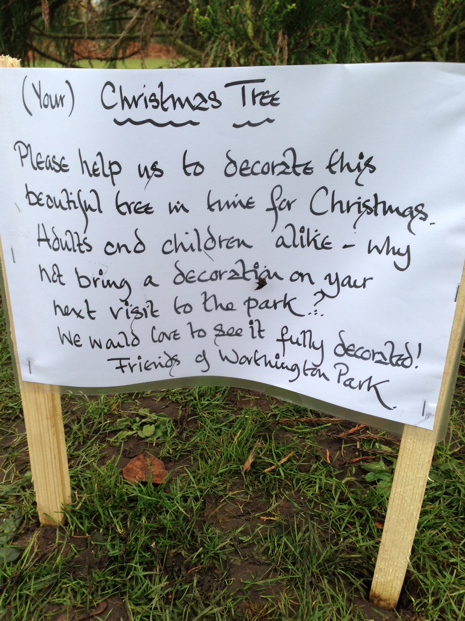 Visit the Park and bring a bauble to decorate our community Christmas Tree. The tree was planted to commemorate Sheila Dingwall who was Secretary of the Friends Group for some years. The tree is near the statue of Joule.