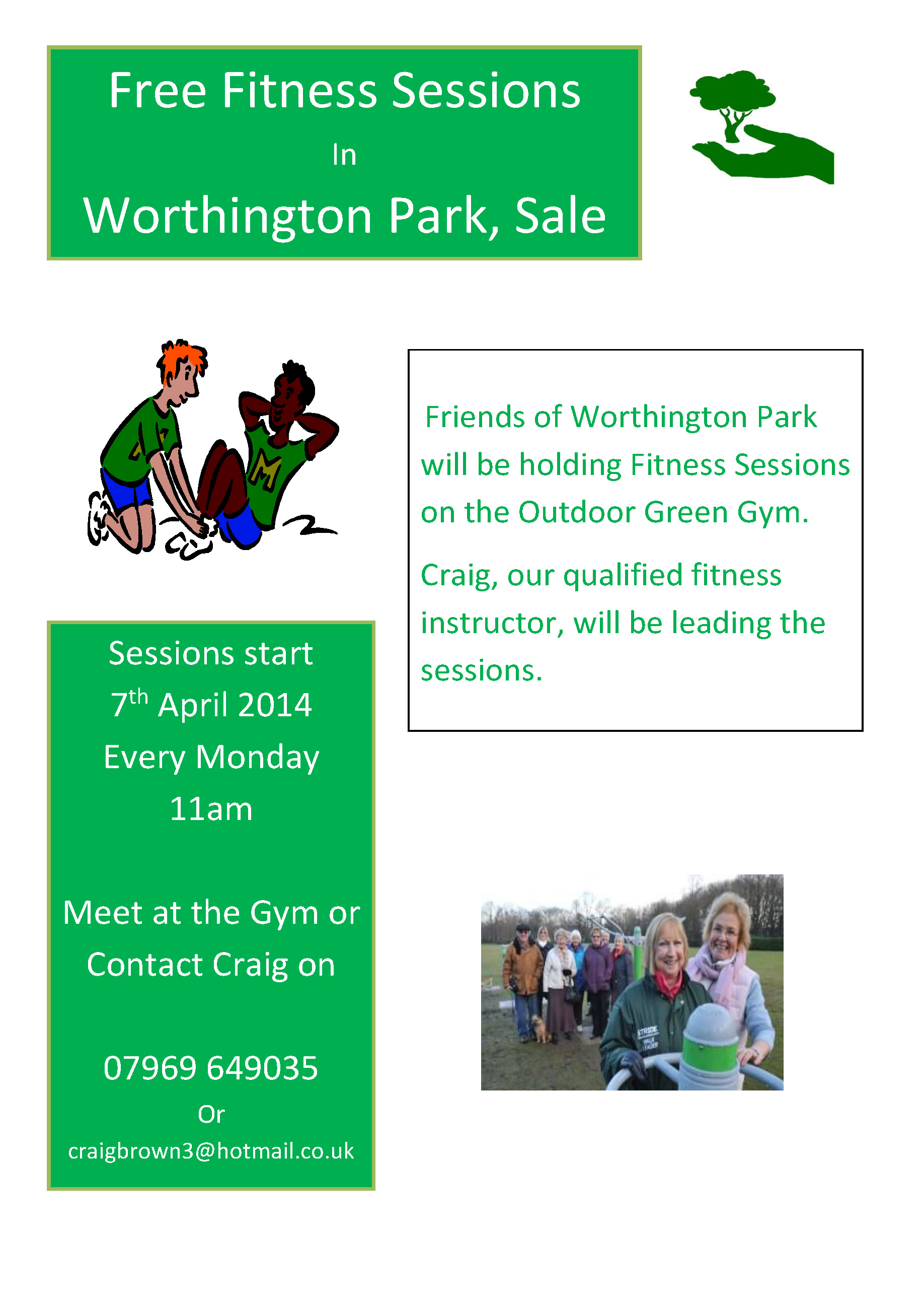 The free outdoor gym fitness sessions organised by the Friends Group and run by Craig Brown, our fitness qualified instructor, will re-start on Monday 7th April 2014 at 11am.