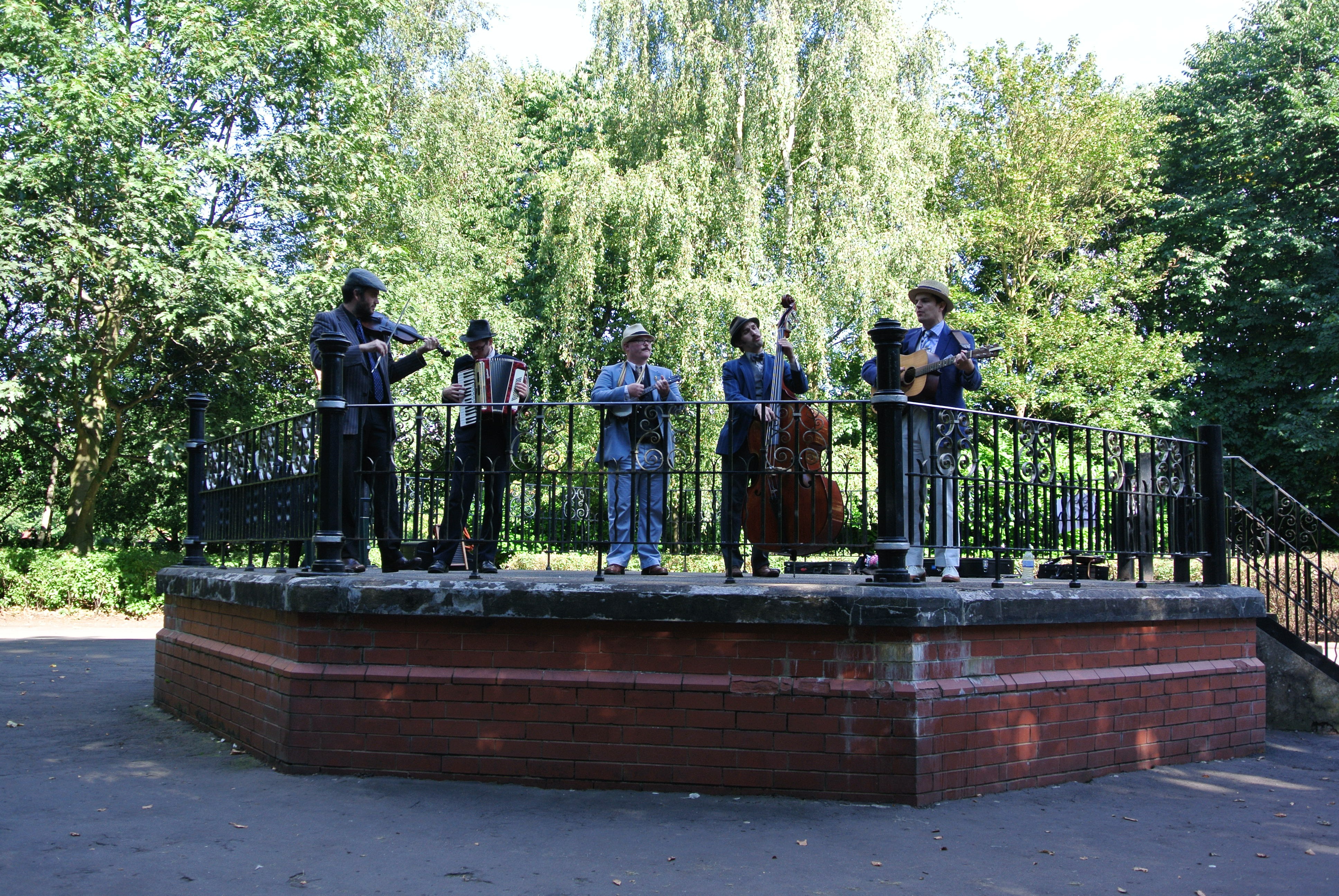 Band playing at the Family Sports day event in the Park today, Sunday 13 July 2014.